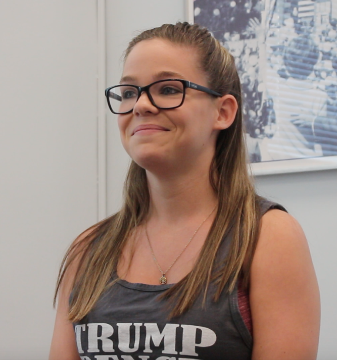 Hofstra student Shannon Spada proudly wears her Trump/Pence t-shirt.