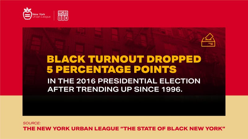 On a national level, there was an increase in engagement among Black voters from 1996 to 2016, and then it plummeted that year. In New York, we have our own voter patterns and issues.