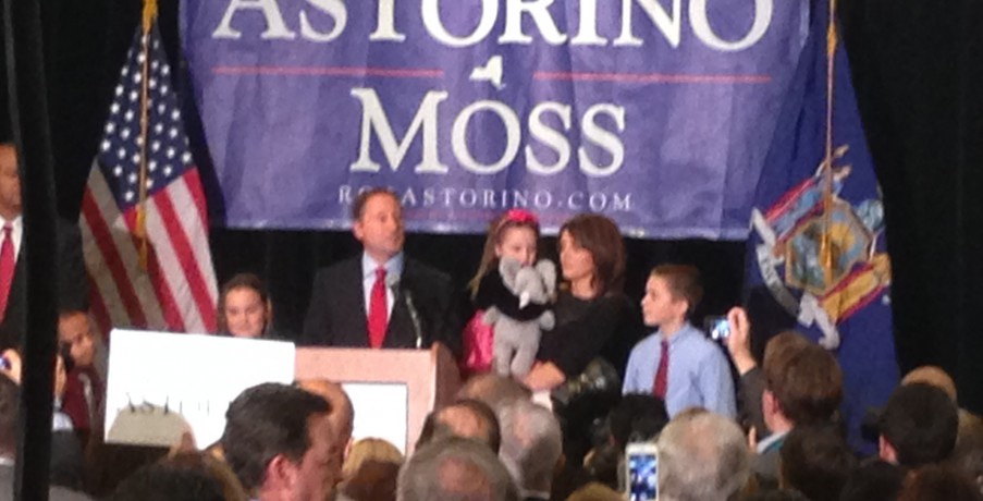 Astorino, who was watching the results with his family in a suite upstairs, came down to the ballroom at the White Plains hotel to give his concession speech. Joined by his wife Sheila and his three children, he spoke to his supporters.