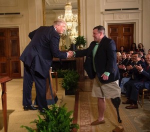 President Trump shakes hands with retired U.S. Army Sgt. Michael Verardo, during the President’s remarks in the East Room of the White House, prior to signing the Department of Veterans Affairs Accountability and Whistleblower Protection Act of 2017. (Courtesy: The White House)