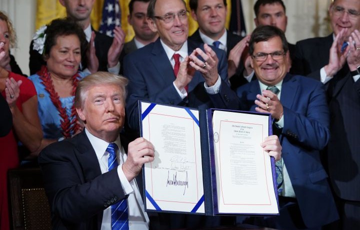 Featured Image: U.S. President Donald Trump holds up the bill after signing the Department of Veterans Affairs Accountability and Whistleblower Protection Act of 2017, on June 23, 2017, in the East Room of the White House in Washington, DC. (Mandel Ngan—AFP/Getty Images)